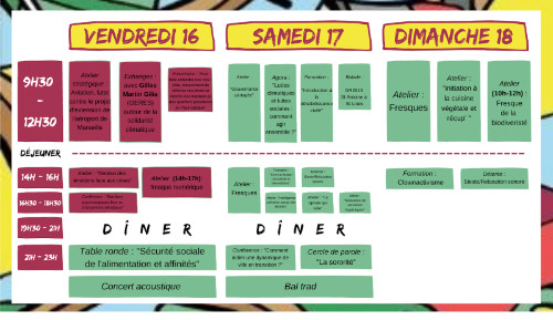 Voici un exemple de programme, qui provient du Camp Climat qui s’est déroulé à Marseille en 2021 :
